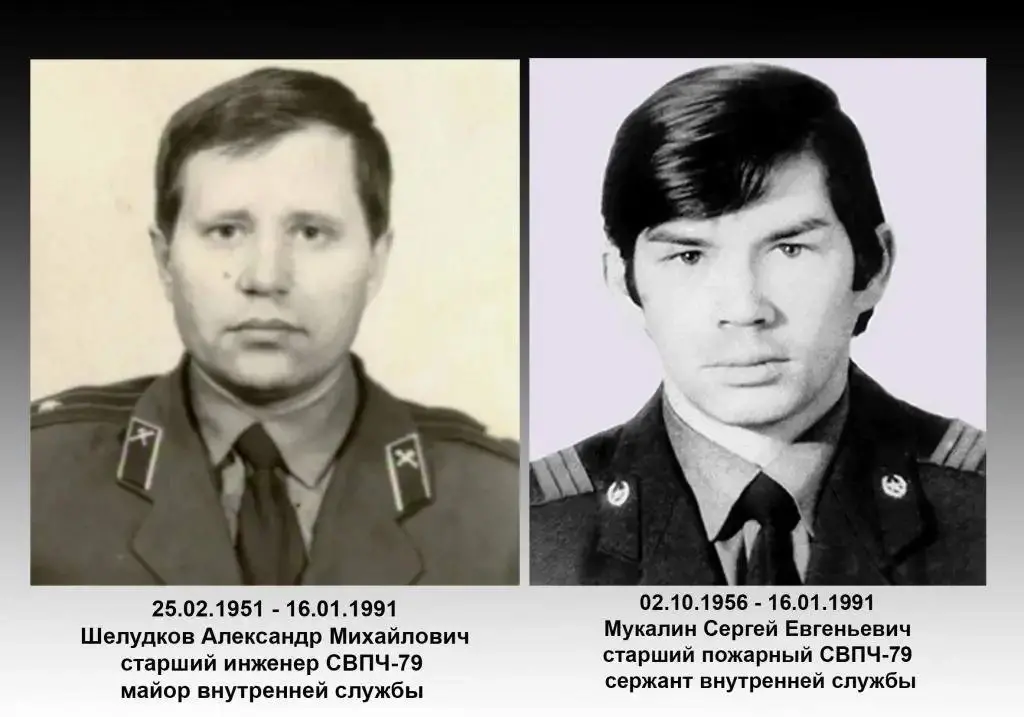 На месте, где они погибли, установлен небольшой обелиск со словами: «Здесь 16 января 1991 года в борьбе с огненной стихией трагически оборвалась жизнь Шелудкова Александра Михайловича и Мукалина Сергея Евгеньевича. Путник, помяни память погибших минутой молчания. Вечная память исполнившим долг».