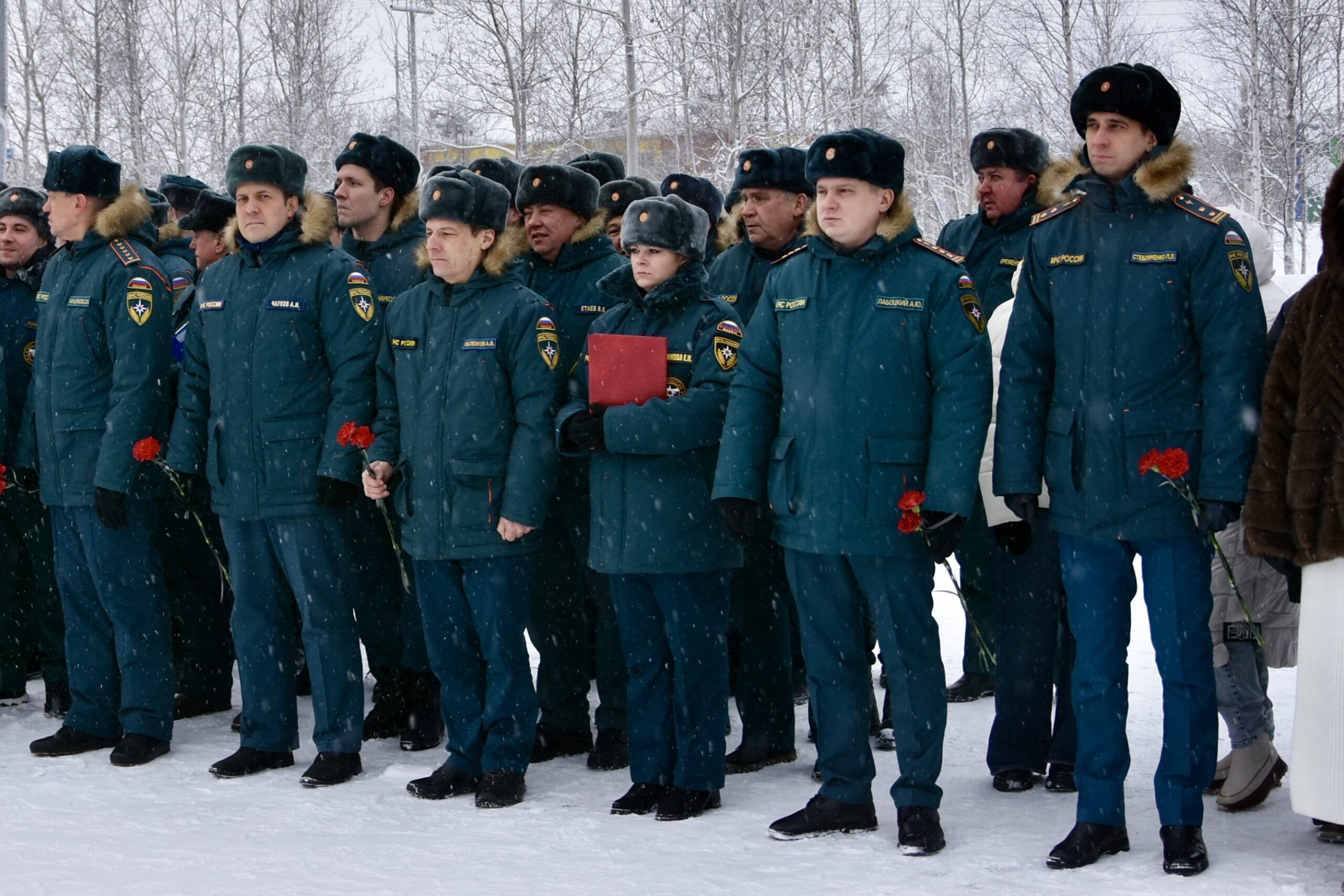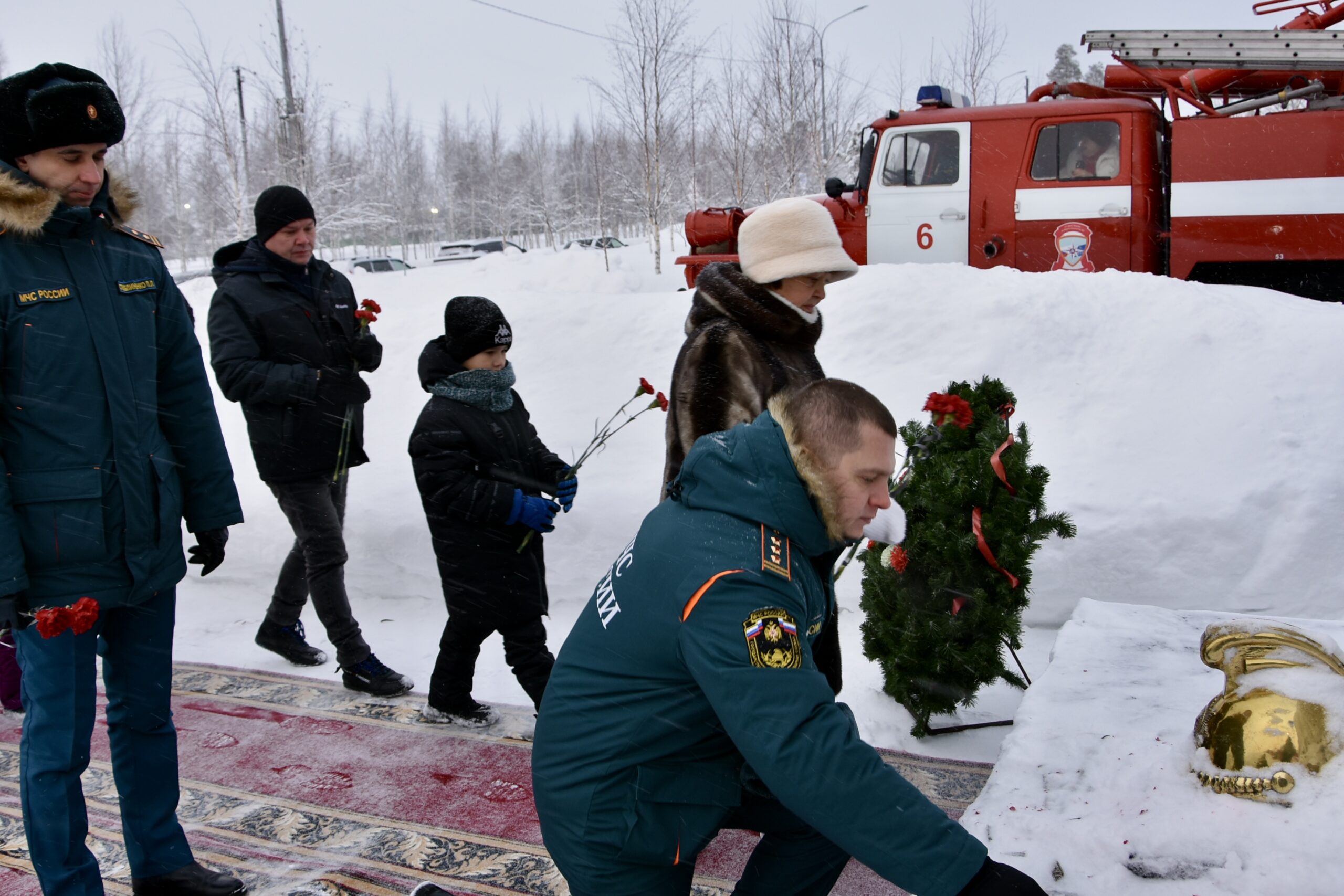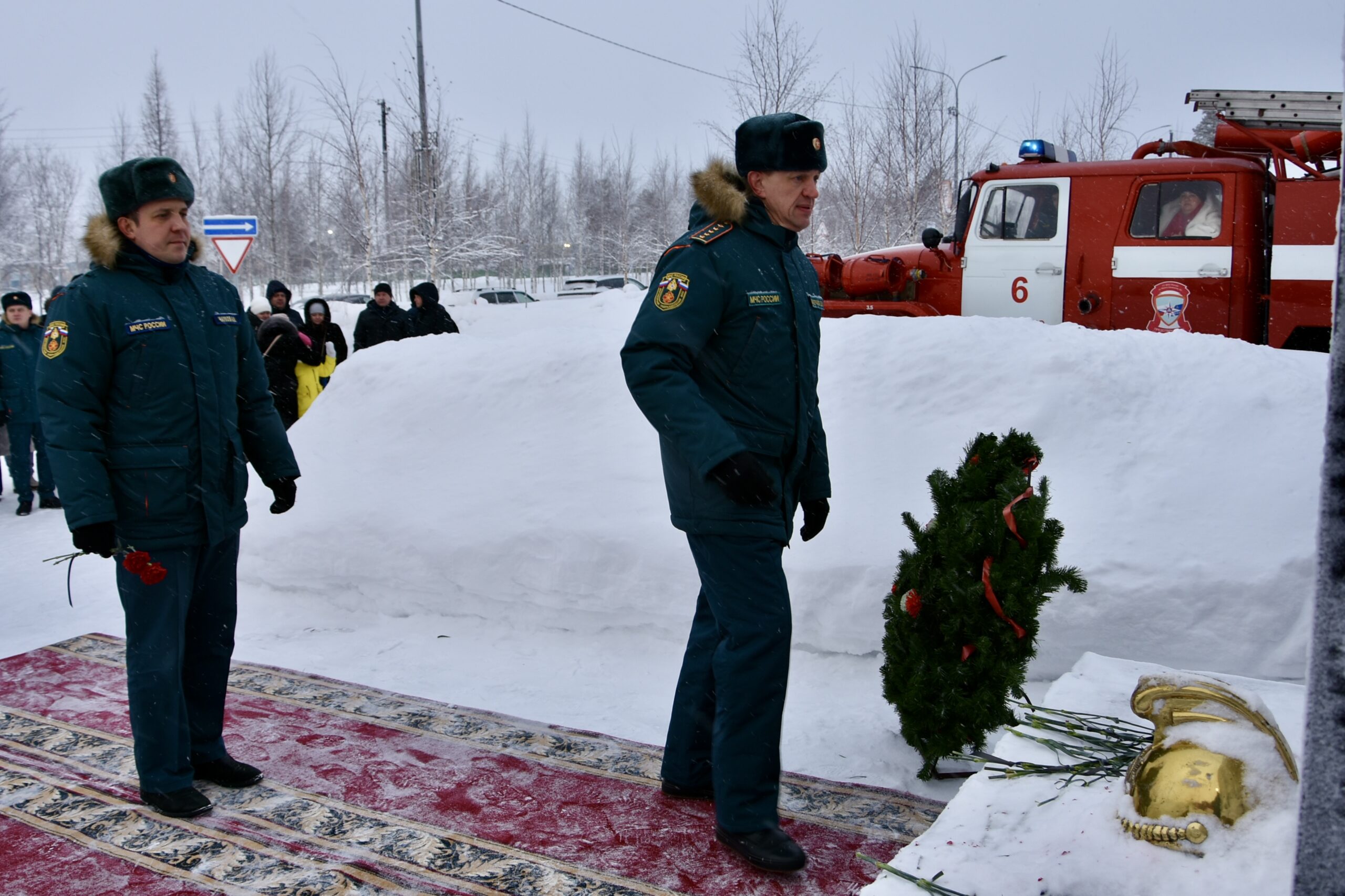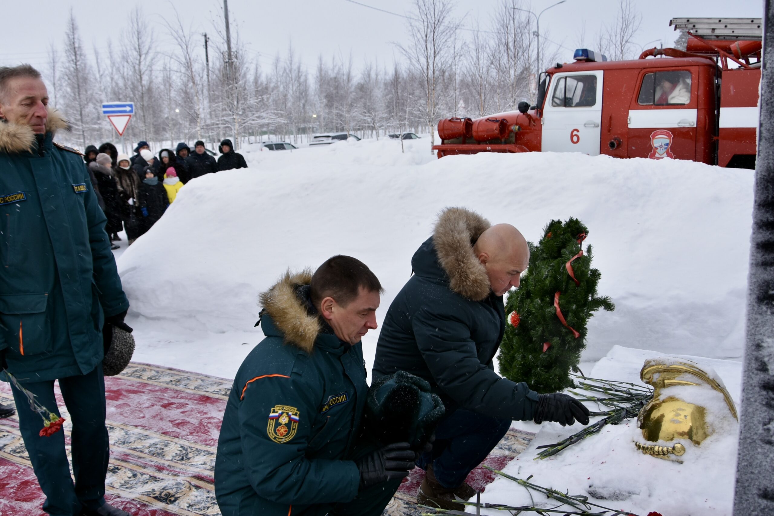В 35-ю годовщину трагедии у памятного знака собрались коллеги, ветераны, близкие родственники и жители города. Минута молчания застыла в морозном воздухе, а к подножию легли алые гвоздики.