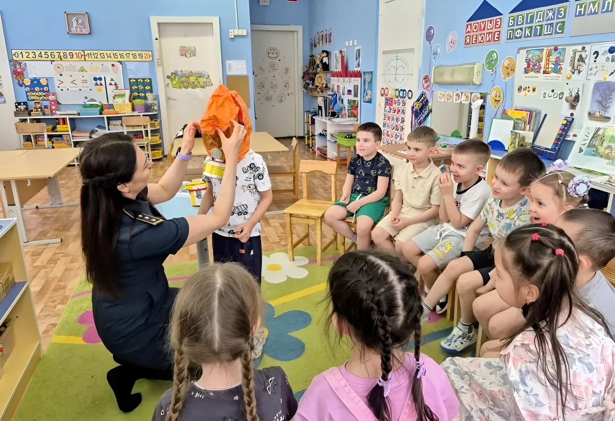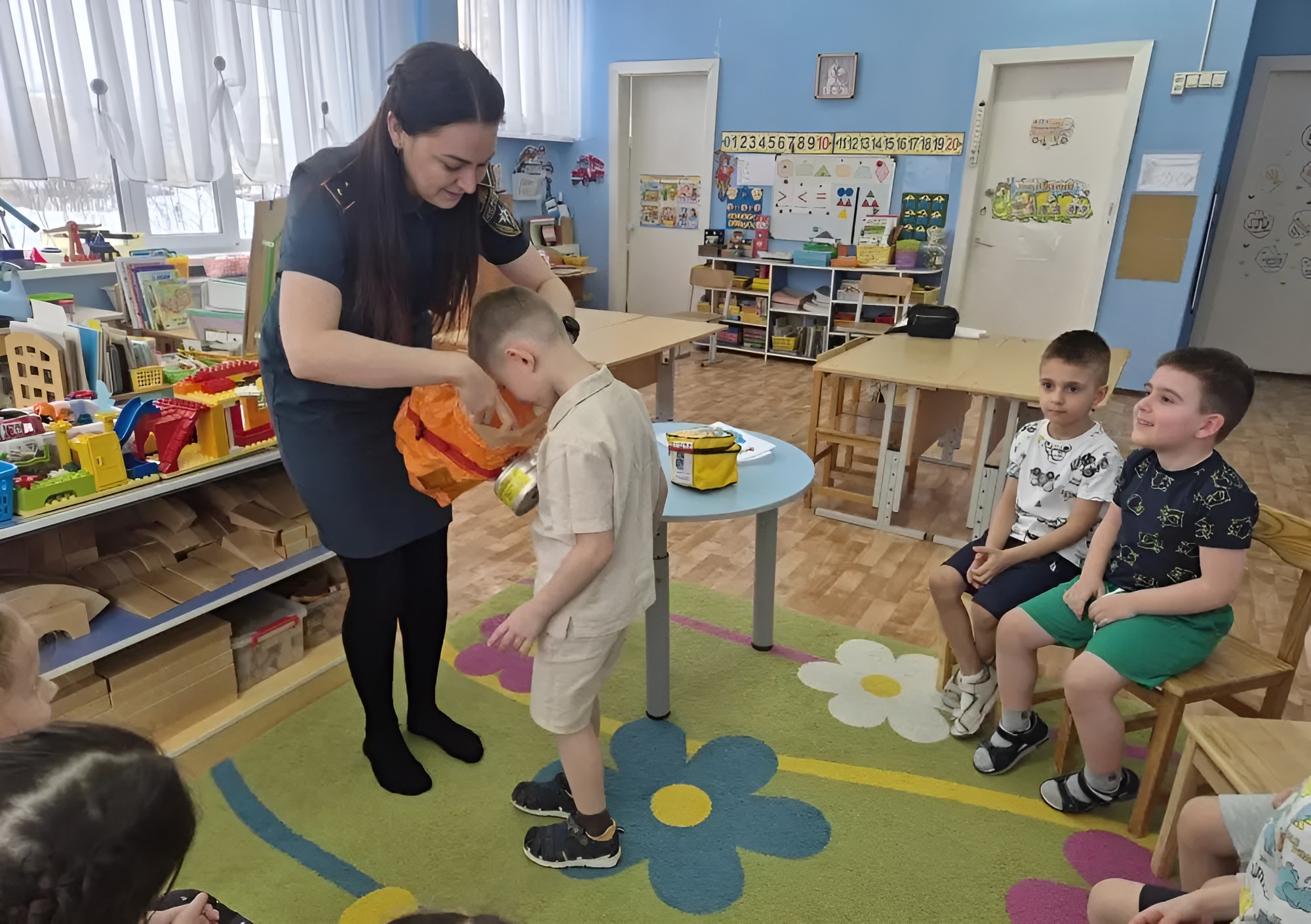 Малыши узнали о правилах пожарной безопасности и о том, как нужно вести себя в различных ситуациях. Виктория показала детям боевую одежду пожарного и рассказала о действиях, которые следует предпринять в случае возникновения пожара. Ребята узнали, что в экстренной ситуации важно позвать на помощь взрослых, а если их рядом нет, то необходимо звонить в службу пожарной охраны по номеру 112. Она также акцентировала внимание на важности четкого указания своего адреса: улицы, номера дома и квартиры.