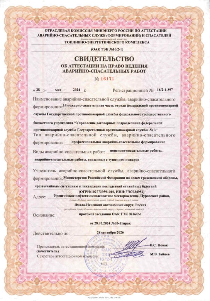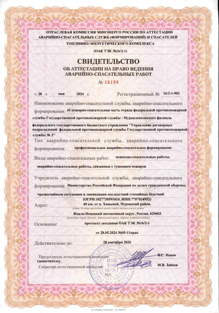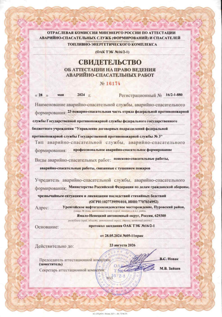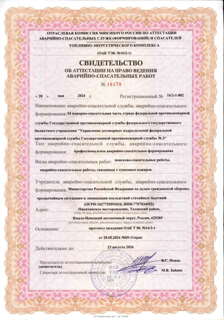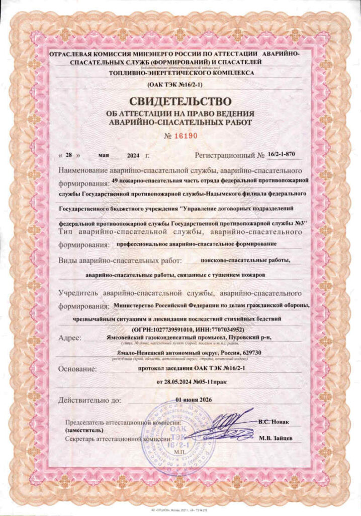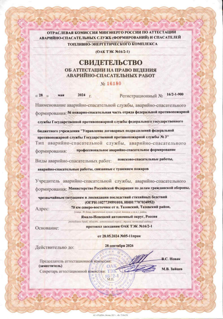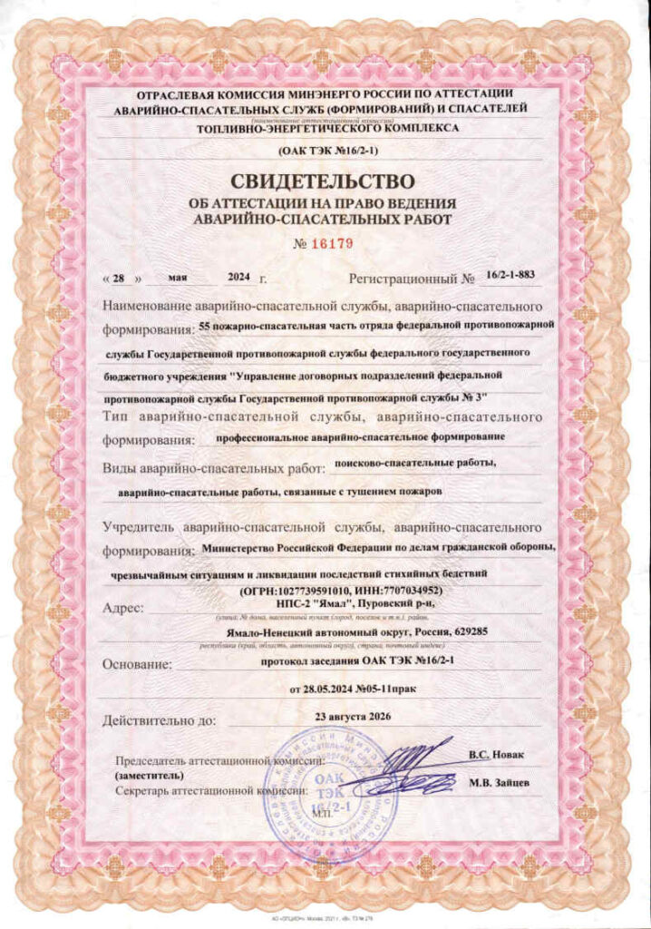 Свидетельства об аттестации на право ведения аварийно-спасательных работ