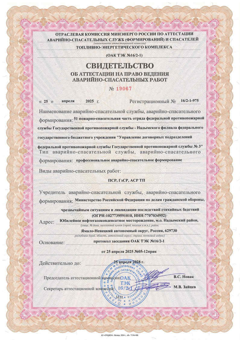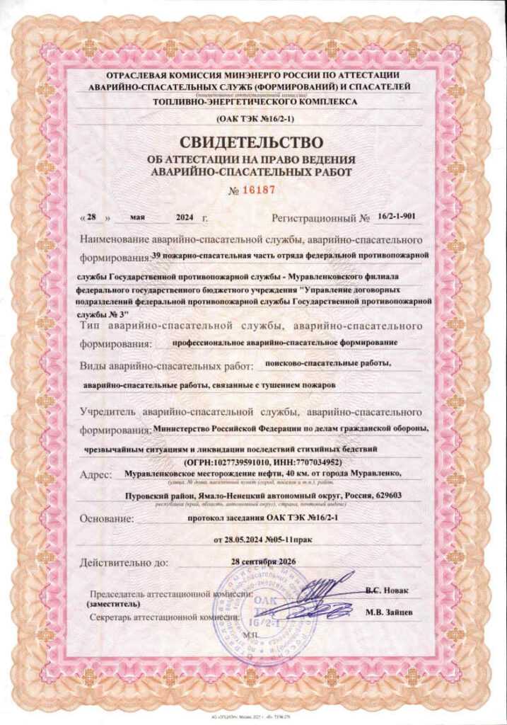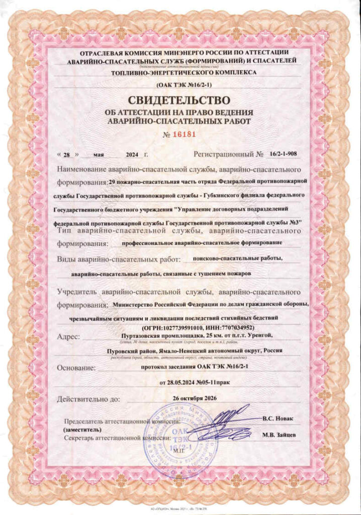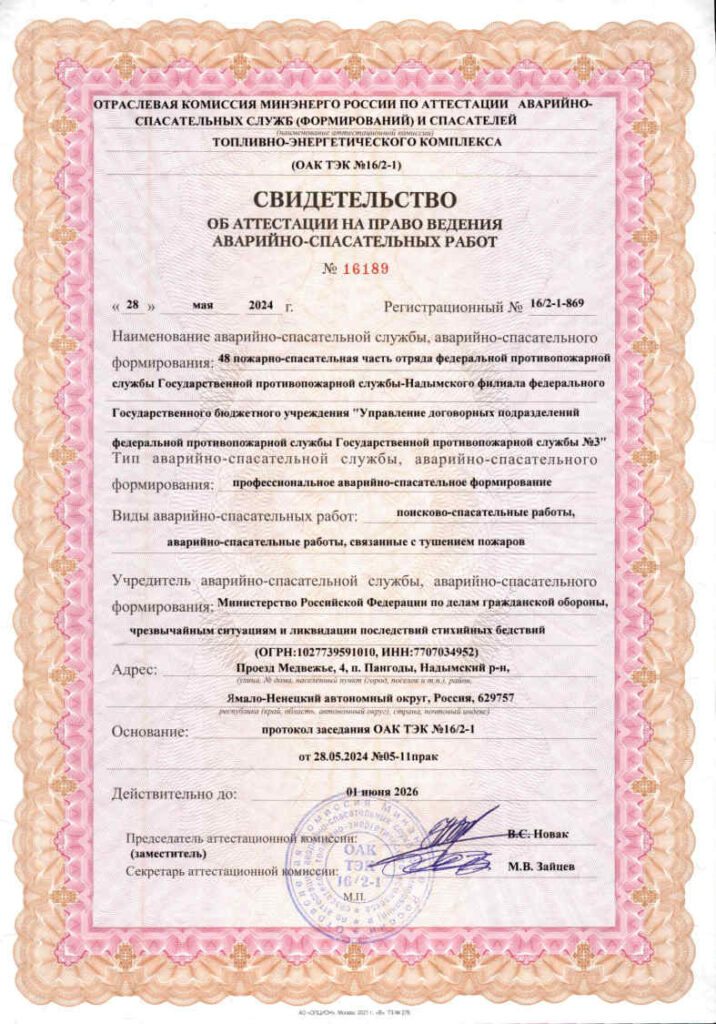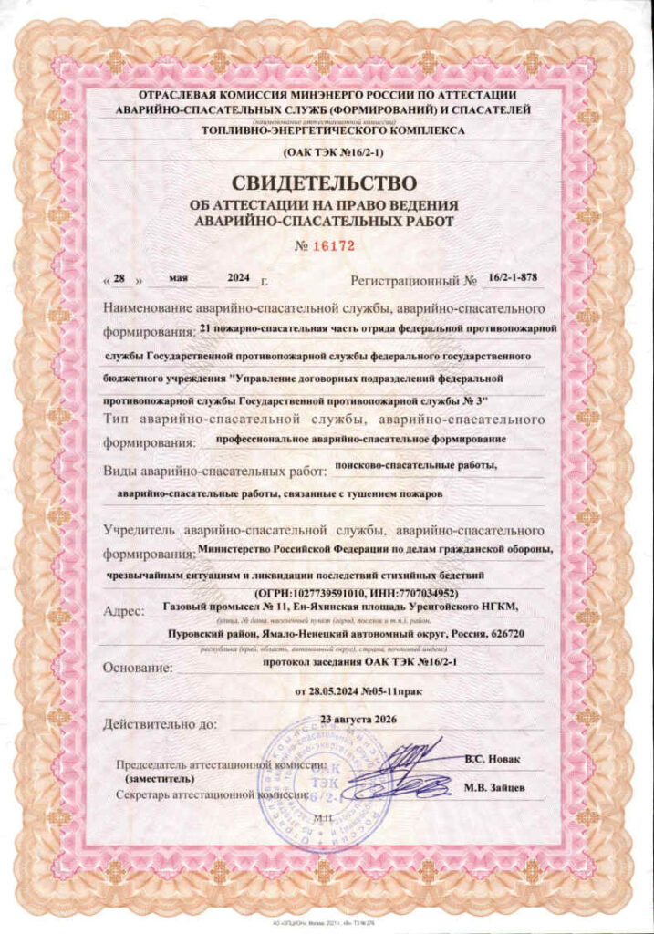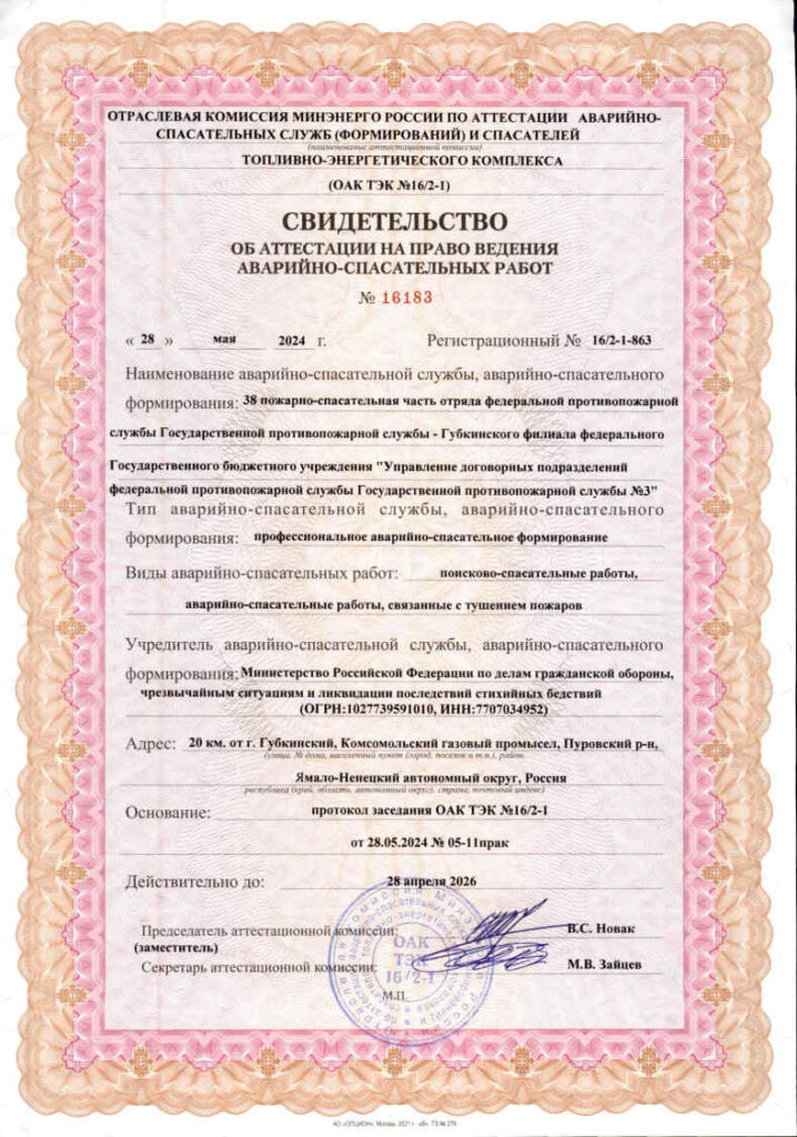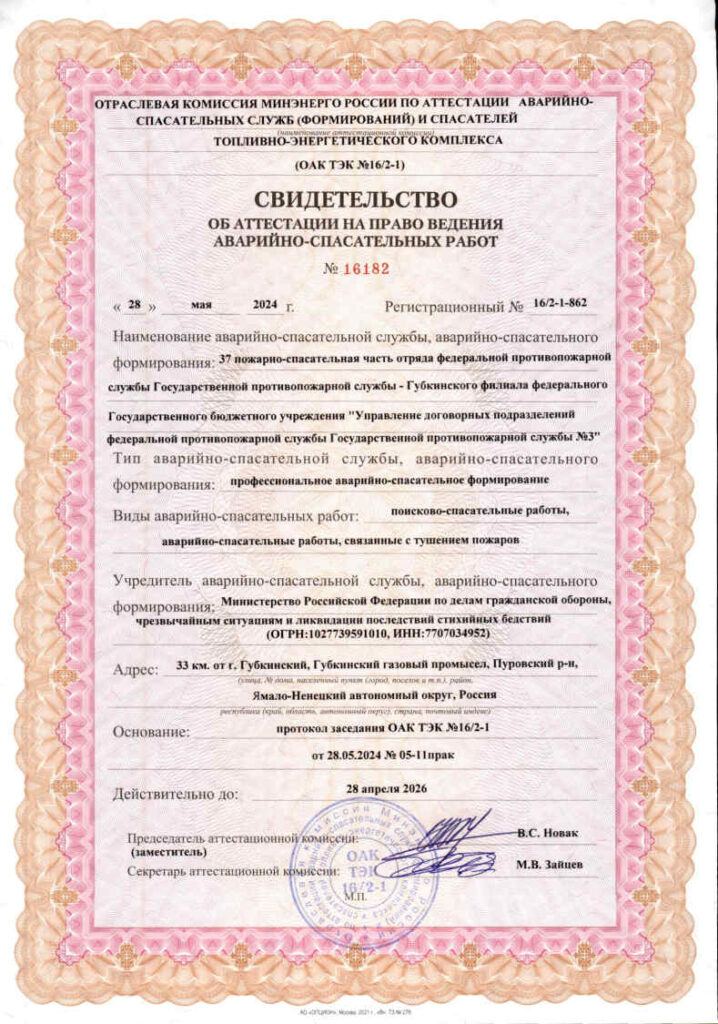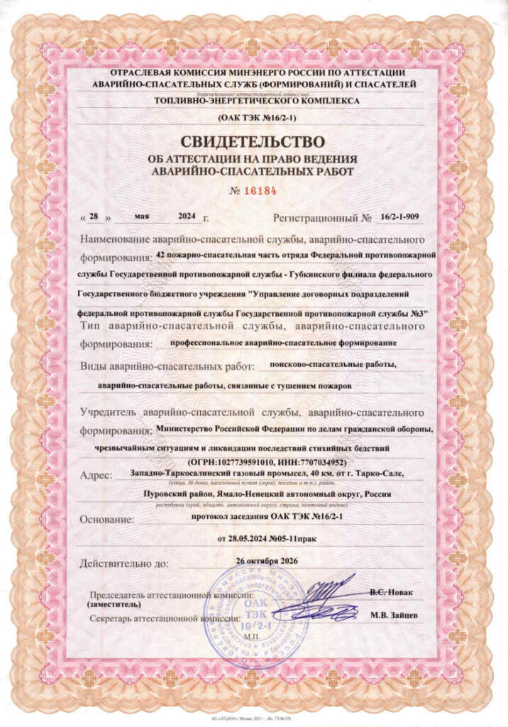 Свидетельства об аттестации на право ведения аварийно-спасательных работ
