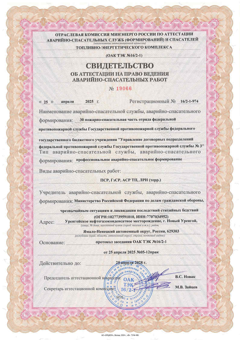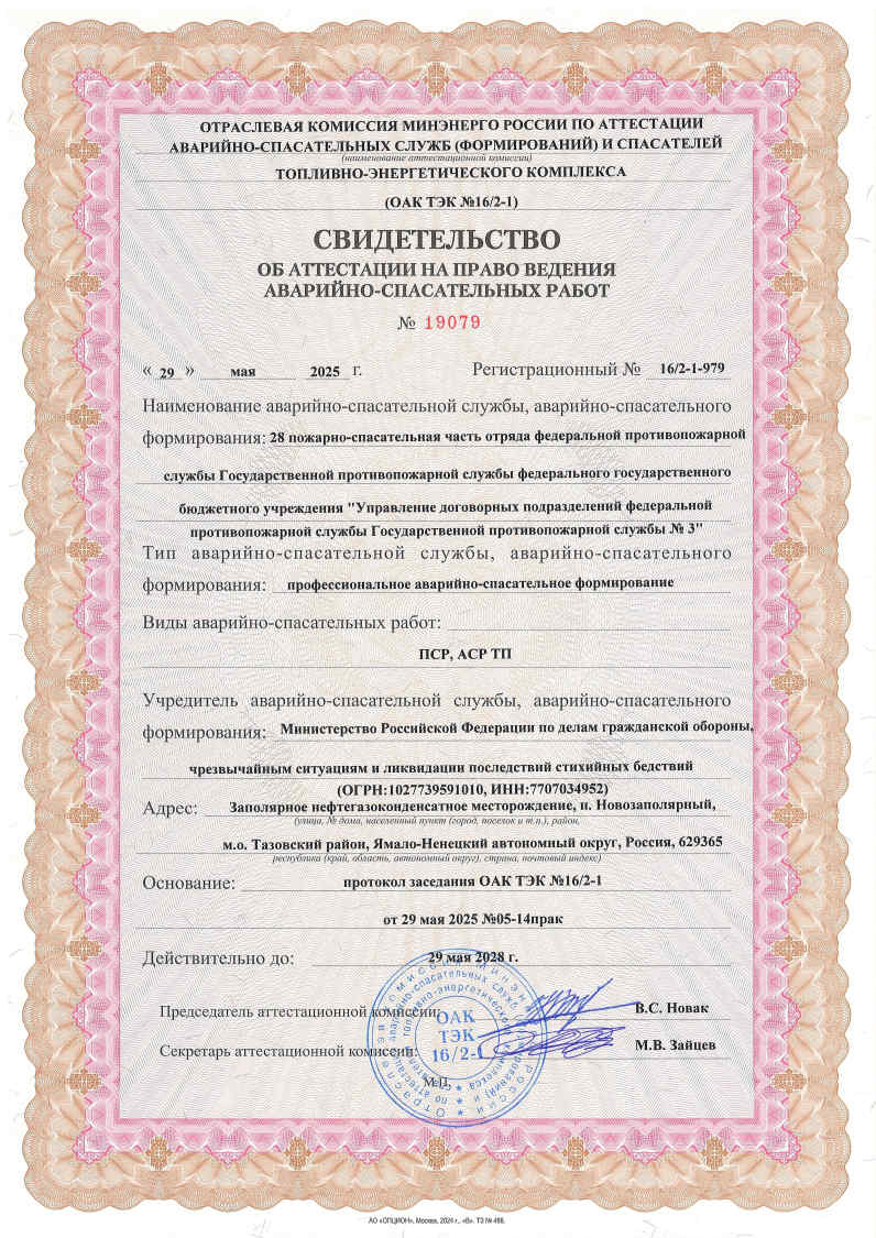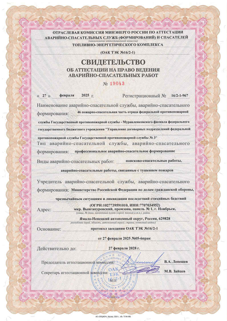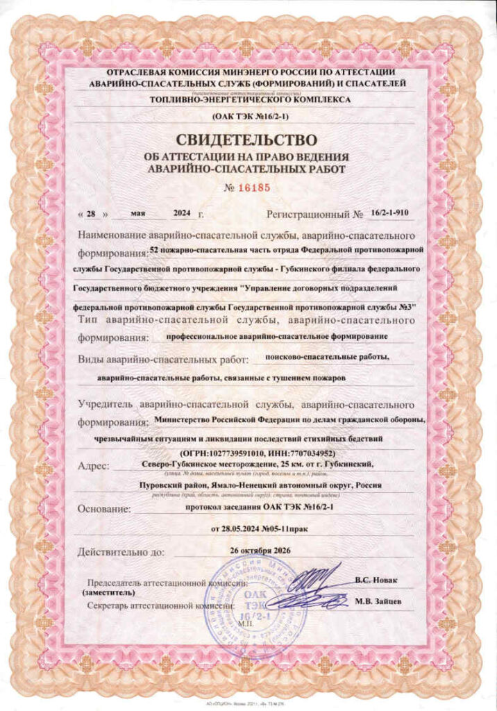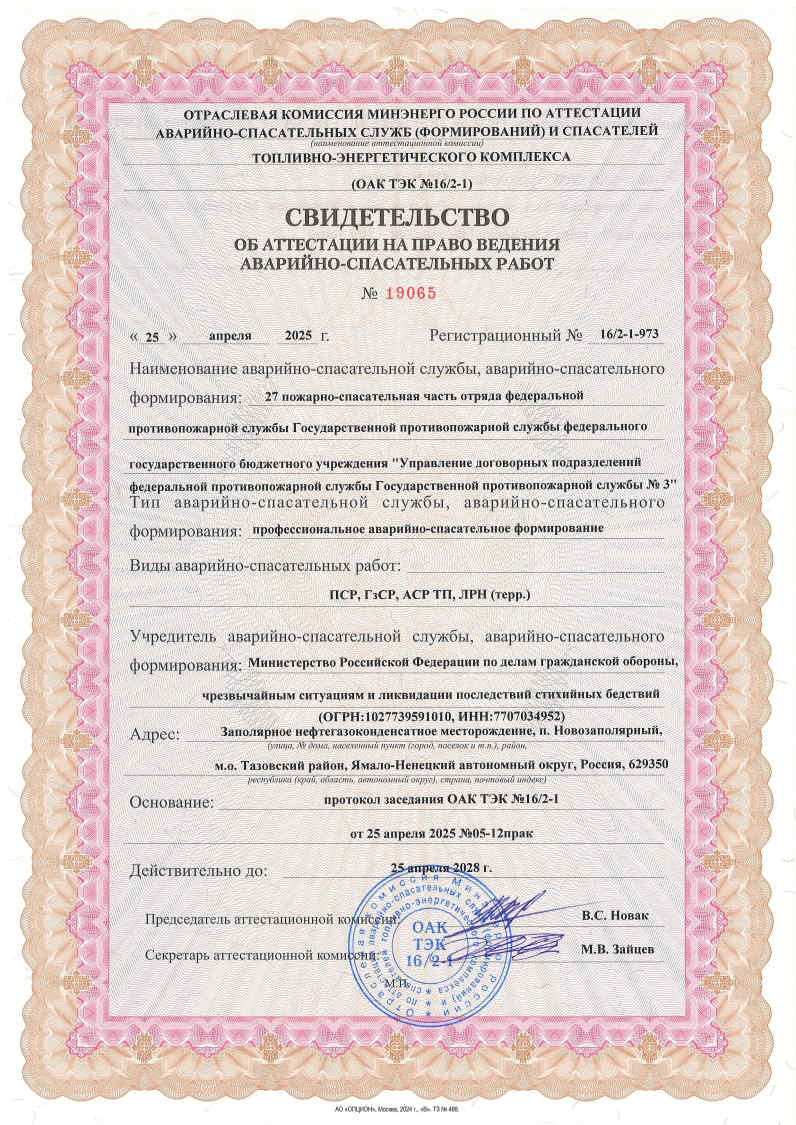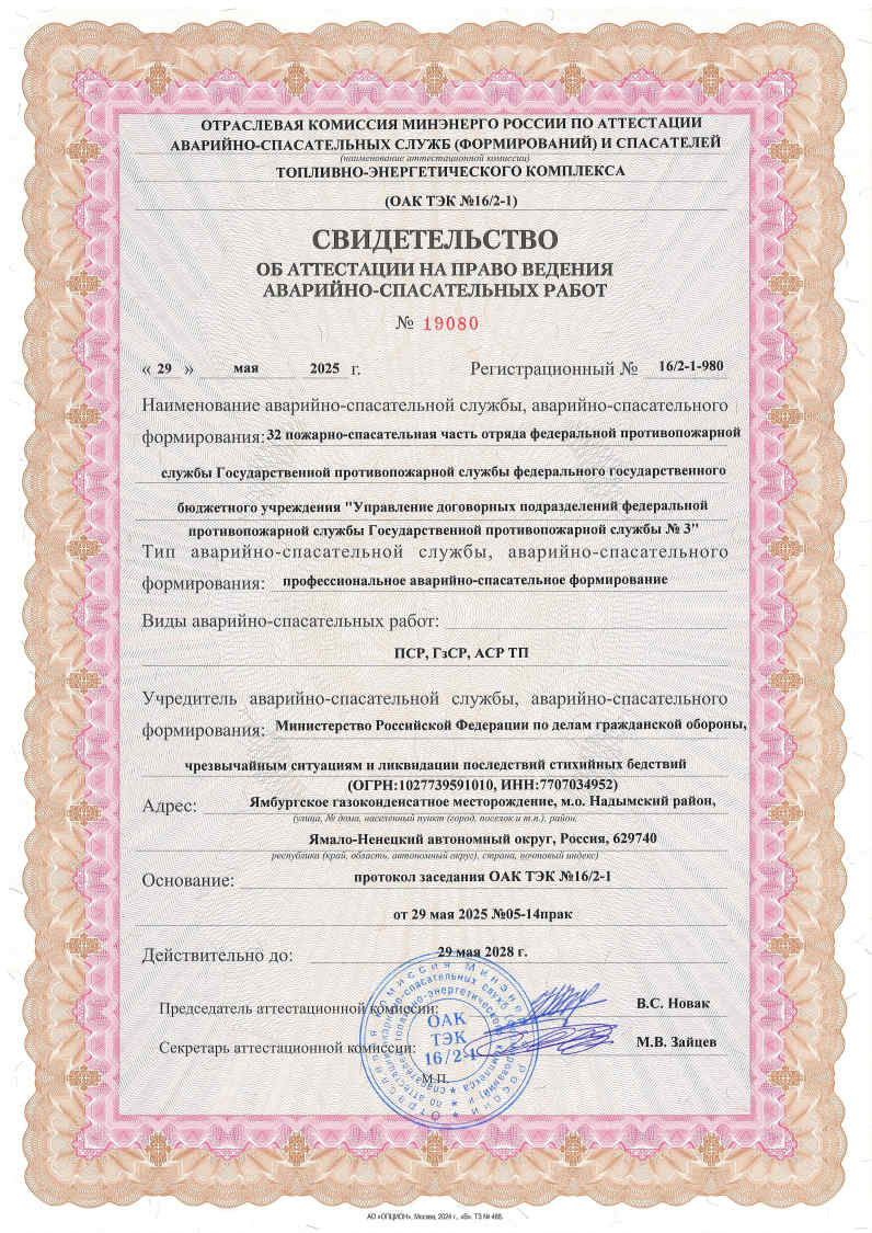 Свидетельства об аттестации на право ведения аварийно-спасательных работ